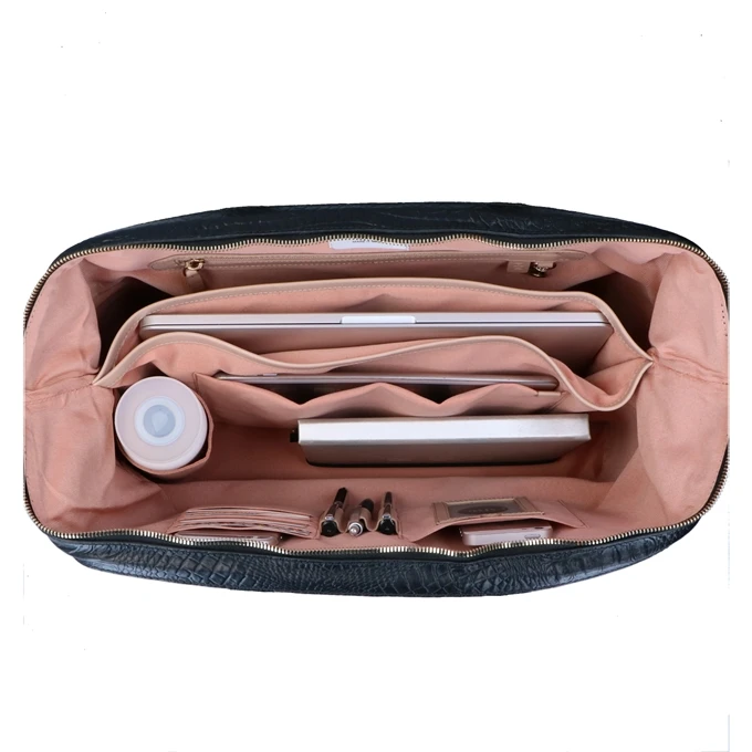 Organiseer al je school- of werkbenodigdheden met FMME’s Christy 15.6. Naast het hoogwaardige leer heeft de tas een stijlvol design. De tas heeft een ruim interieur, waarin je ook je 15,6″ laptop kwijt kunt. Deze kan gemakkelijk worden opgeborgen in het gewatteerde 15,6″ laptop compartiment. Niet alleen je laptop berg je veilig op. Ook je tablet neem je zonder zorgen mee dankzij het gewatteerde tablet vak. Je draagt de tas comfortabel in de hand aan de twee handvatten of om je schouder dankzij de verstelbare en afneembare schouderriem. Met een soepele ritssluiting sluit je het hoofdvak af en berg je je spullen veilig op.