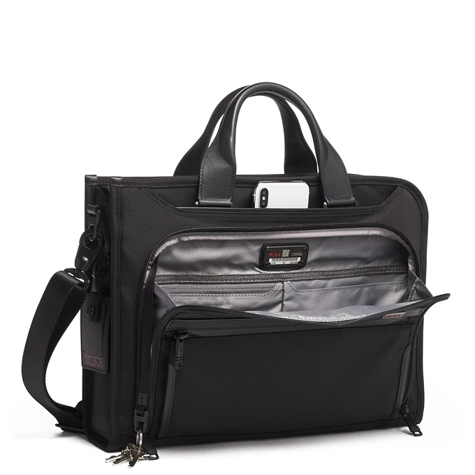 Niet alleen een laptopvak, maar ook nog als extra een tabletvak. Dus je laptop + tablet, of één van beiden neem je eenvoudig mee in deze aktetas van Tumi. Net als bij een laptopvak heeft een apart vak voor je tablet als voordeel dat je tablet niet in aanraking komt met scherpe objecten in je tas, en je tablet er dus veel langer als nieuw uit blijft zien.