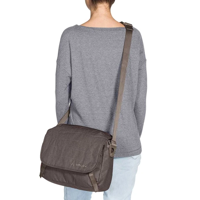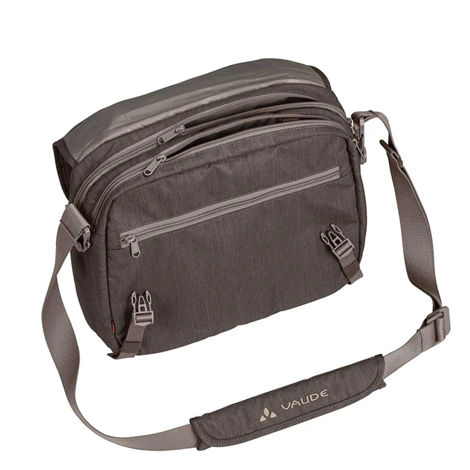 De Vaude Recycled haPET II Schoudertasis een compacte en fijne schoudertas met een georganiseerd interieur. De tas beschikt over twee aparte ritscompartimenten die worden afgesloten door middel van de flap met gespsluitingen. Het achterste compartiment is geschikt voor een 12” laptop. Het voorste compartiment beschikt over insteekvakken, een sleutelclip en pennenhouders. Daarnaast zijn eigendommen zeer overzichtelijk op te bergen in het ritsvak aan de voorzijde met insteekvakken of het ruime ritsvak aan de achterzijde.De verstelbare schouderriem met gewatteerde schouderpad zorgt voor een maximaal draagcomfort.